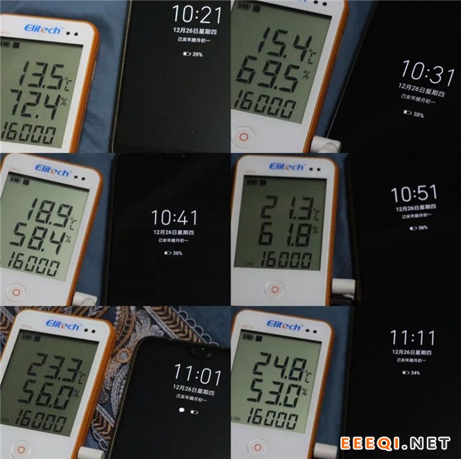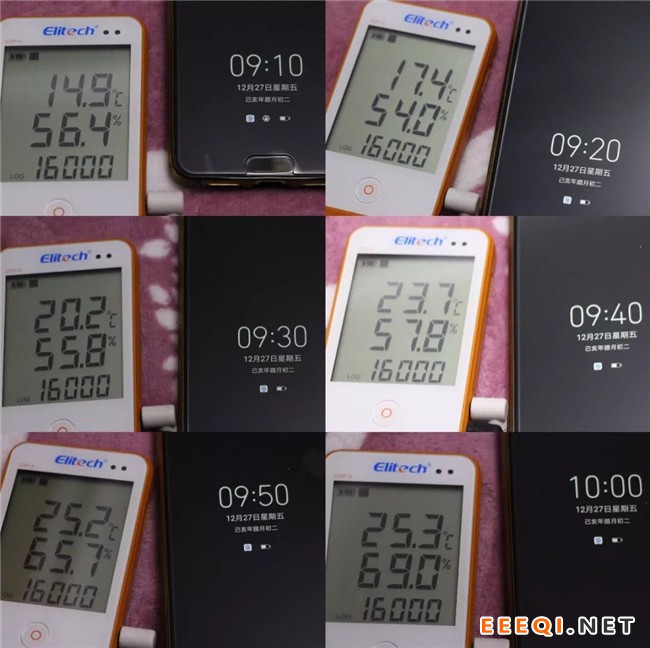 在进行制热效果的测评时,考虑到影响制热效果的影响因素较多,所以在测量时,我们尽可能保证在密闭环境下,在关闭门窗的同时拉上窗帘,且保证房间内无人进出,从而记录1小时内每10分钟的温度变化。