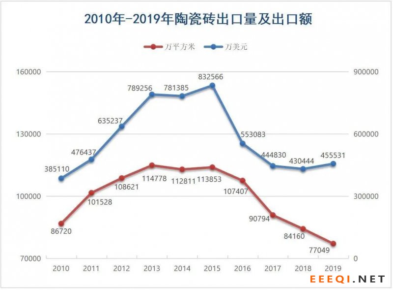 预计2020年我国陶瓷砖出口量将下跌10%左右