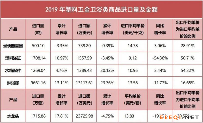 ● 第七是进口产品中,陶瓷砖、卫生陶瓷进口量、进口额均有不同程度增长,其他五金塑料类产品坐便器盖圈外,其他产品的进口量均有不同程度增长。