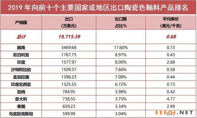 2019陶瓷色釉料出口额13.8亿元,增长6.78%