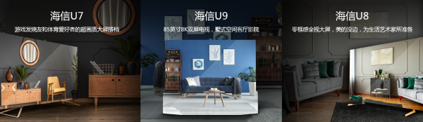4月16日,海信正式推出2020年全系电视新品阵容,包括激光电视L系、超画质电视U、潮科技X系、AI电视A系四大系列共30余款产品,这些不同的产品也为家庭不同场景化的应用提供了各种可能:像激光电视88L5V,屏幕发声激光电视,在家看电影大片,体验视听震撼;激光电视759S更健康护眼,适合儿童看动画片,玩游戏;75吋U7系列大屏电视,特别适合新婚家庭,既有大屏视听震撼,又有超高性价比,可以作为五一新婚家庭购置电视的第一款大屏;社交电视S7的六路高清视频,开创了云聚会、云K歌、云游戏、云健身等多种创新场景等。