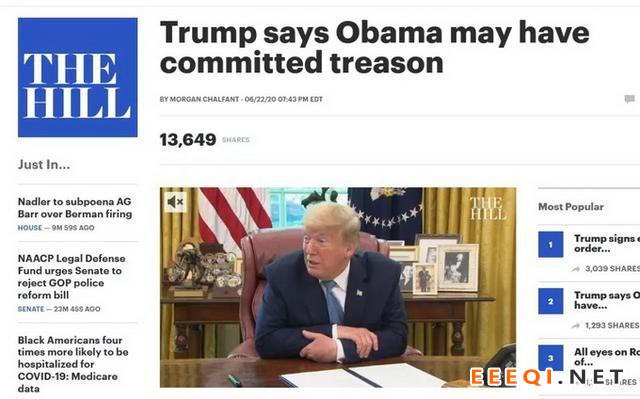“叛国、叛国,这是叛国(罪)!”当地时间22日,美国总统特朗普连用3个“叛国”怒批前任总统奥巴马,暗示后者在2016年“针对特朗普竞选团队与俄罗斯接触的有关调查”中犯有叛国罪,称奥巴马“监视”了自己的竞选活动。