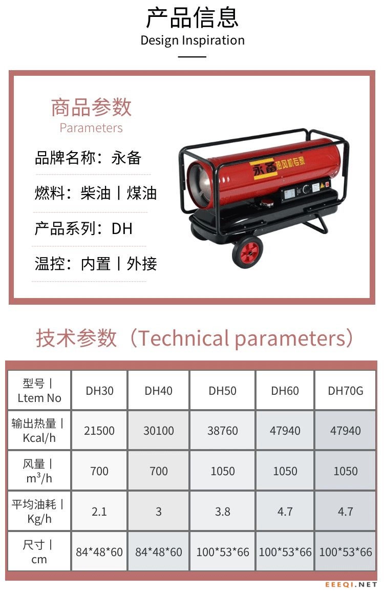 机型应用:适用于建筑工地或小型工业厂房的临时采暖或干燥;厂房的加温供暖;